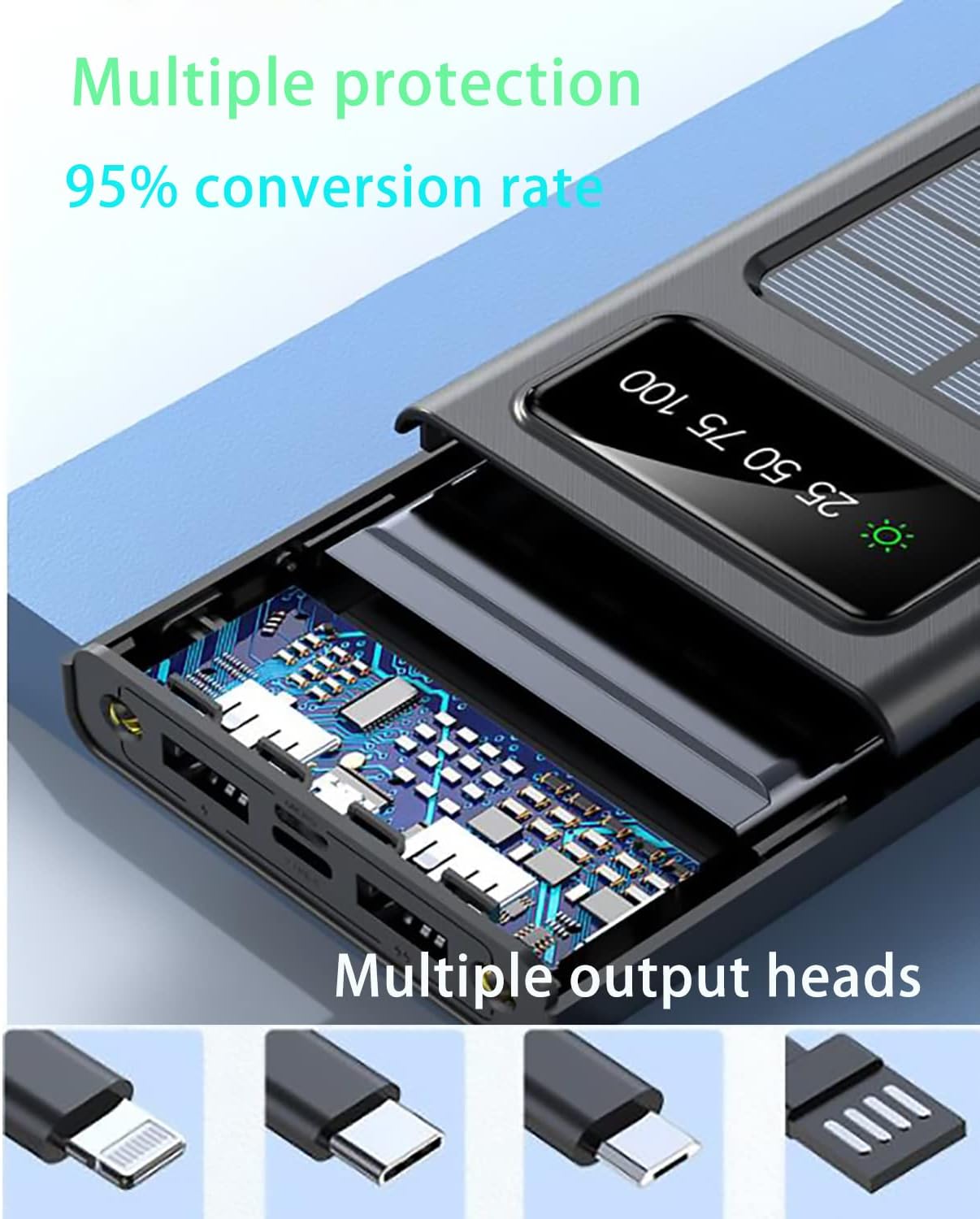 Banca di energia solare, 10000 mAh,contiene 4 file + 2 uscite USB e può caricare 5 dispositivi contemporaneamente ed è compatibile con tutti gli smartphone, tablet e altri dispositivi USB.